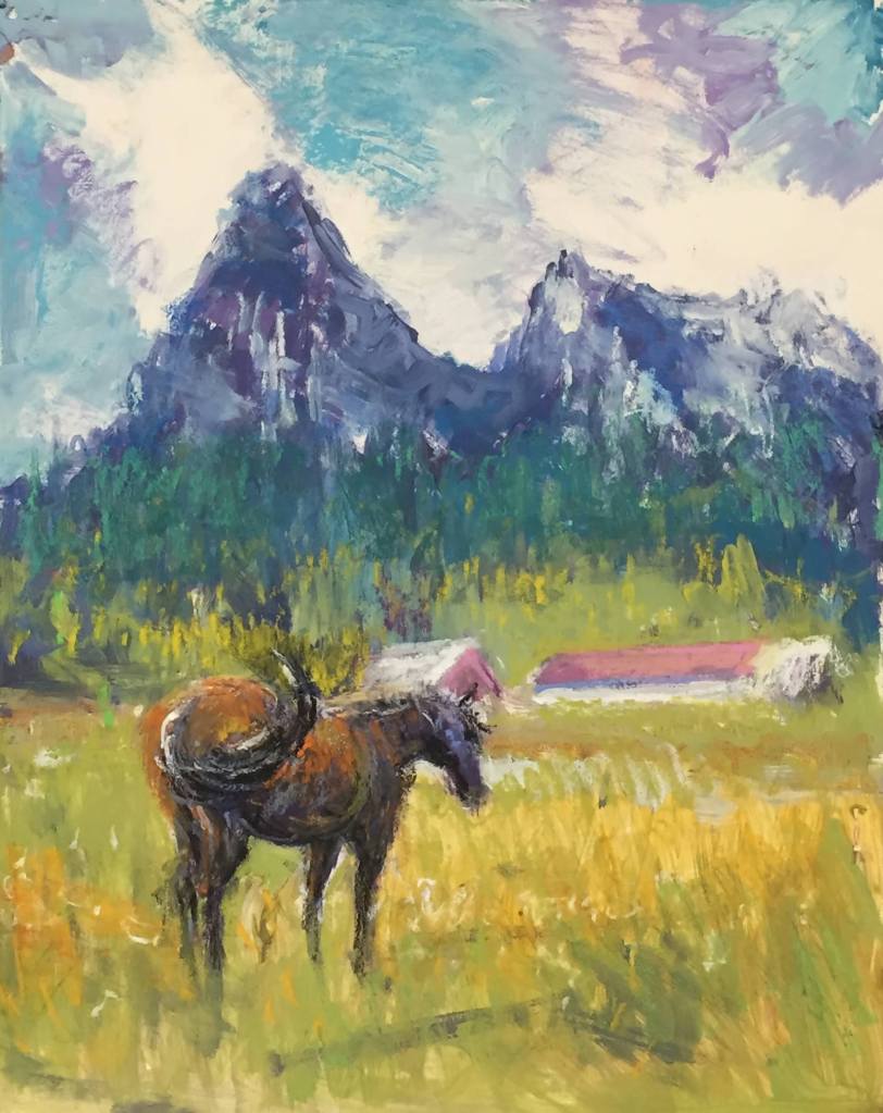9×12. Mixed media on paper. Unframed. Frame can be added cost.