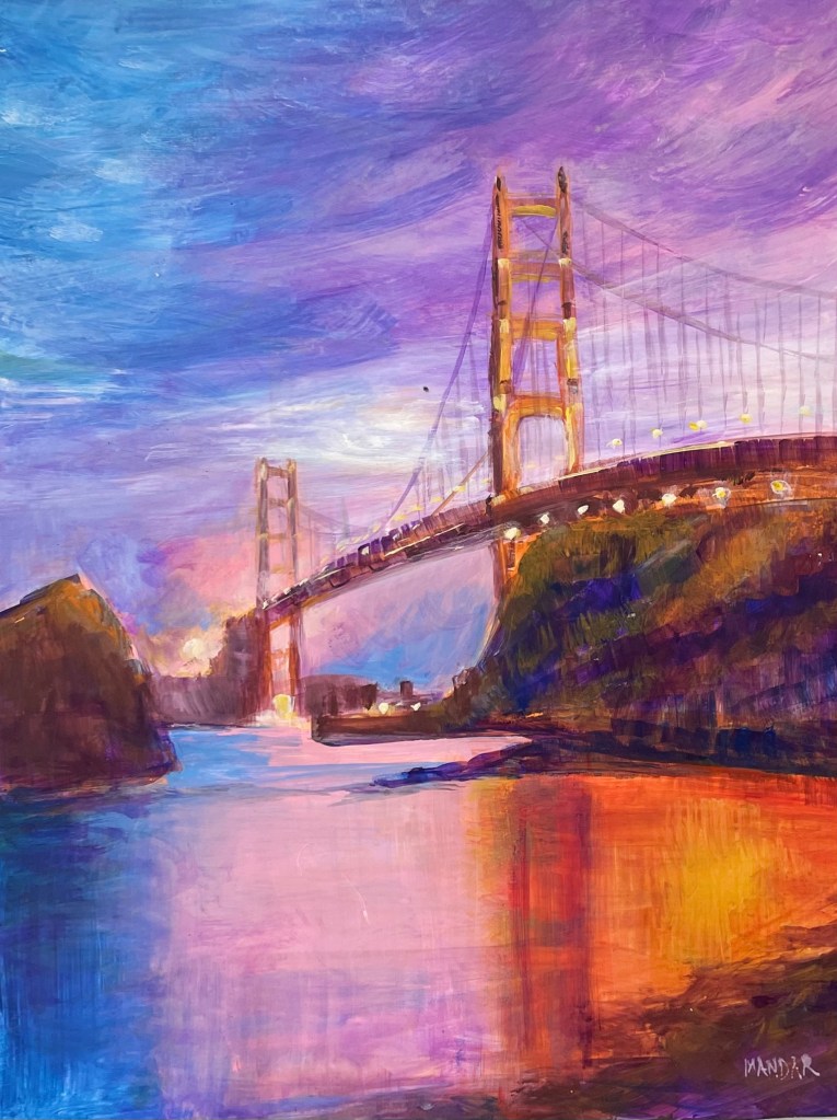 Painting is beautiful, and looks exactly like Alameda! Mandar also helped me with framing of the picture, so it looked absolutely stunning when I gave it away. Mandar was very accommodating with the delivery process and also very responsive in all communication. Overall a pleasure to do business with, and the painting was fantastic – it looks even better in person than in the photos on the site!- Eva