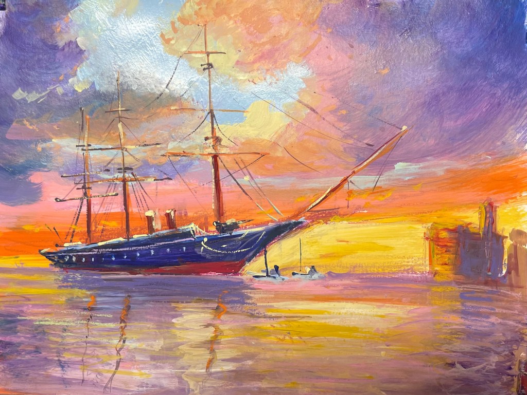 Ship at sunset