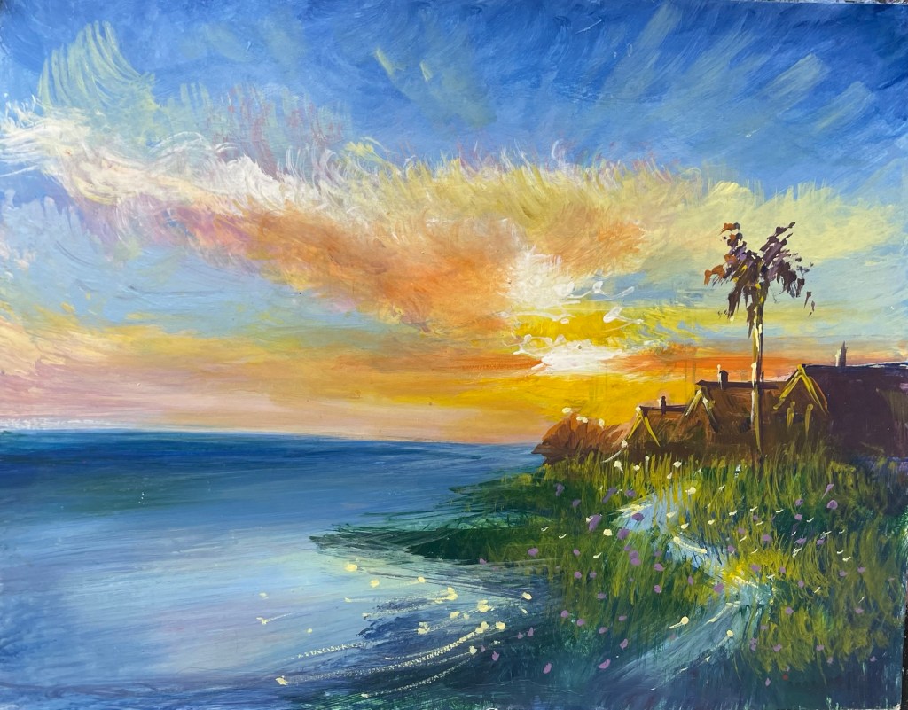 9×12 inches. Acrylic on paper. Unframed. Frame can be added cost.
